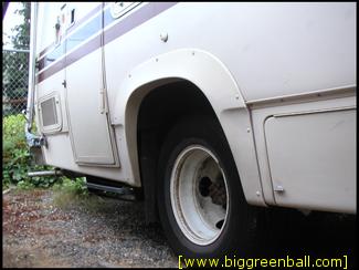 The bad: As with any vehicle this age, there is some minor cosmetic damage. The rear bumper is bent but fully functional (damage was my fault), the awning arm is bent (my fault again), one of the shiny rear wheel covers is missing (yep, my fault), and the rear bathroom counter is slightly water damaged.