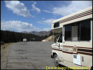 A few hundred miles west of the Great Sand Dunes on highway 160 is Wolf Creek Pass. I think it's something like 12,000 or 13,000 feet. That's not TOO high, I-70 west of Denver crosses higher than that, but traveling in an underpowered RV in need of a diet that hasn't acclimated itself to higher altitude yet makes it feel much, much higher. I had it floored and we were lucky to break 25 mph going up the highway.